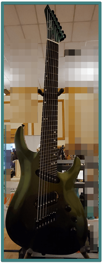 - A 7-string Orsmby SX GTR (Green) multi-scale guitars