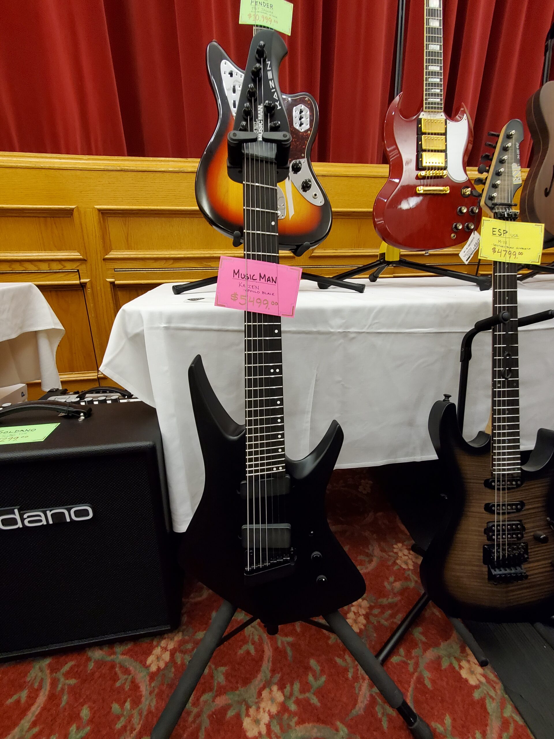 First, walking through the show, you will see what one expects: Used custom/vintage Fenders & Gibsons designed for targeting collectors and players alike. (See Image)
